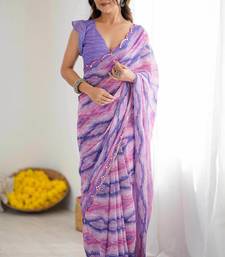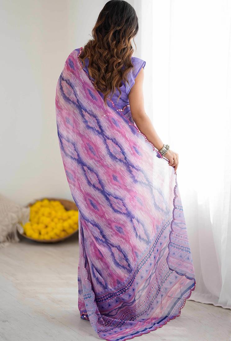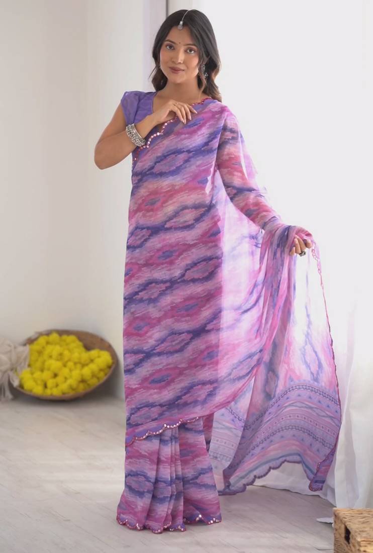 Purple color georgette fabric designer fancy printed bollywood style ceremonial saree