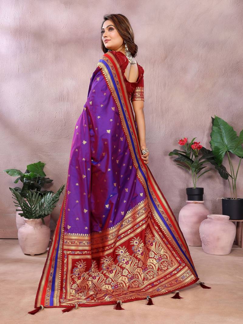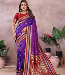 Purple color handloom silk fabric jacquard weaving designer partywear saree