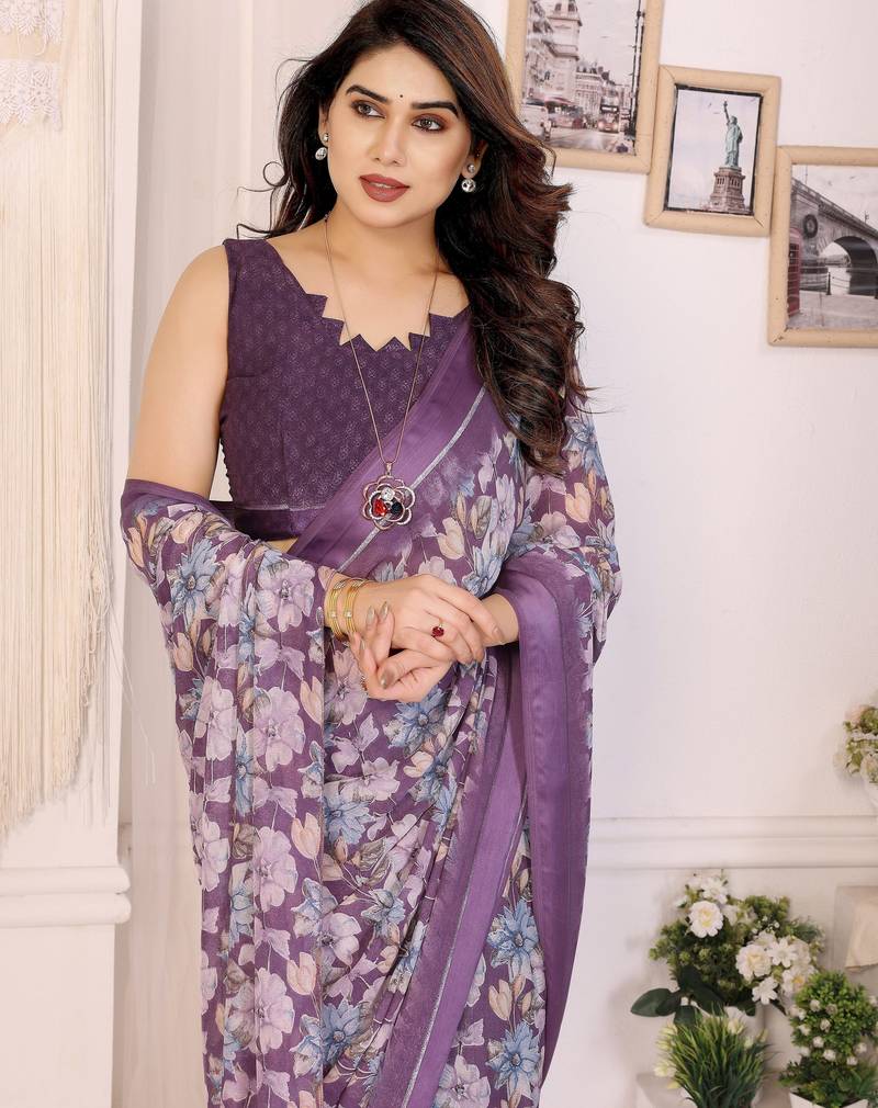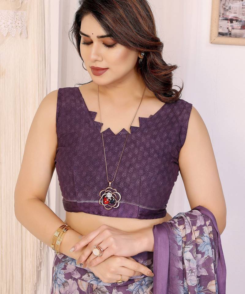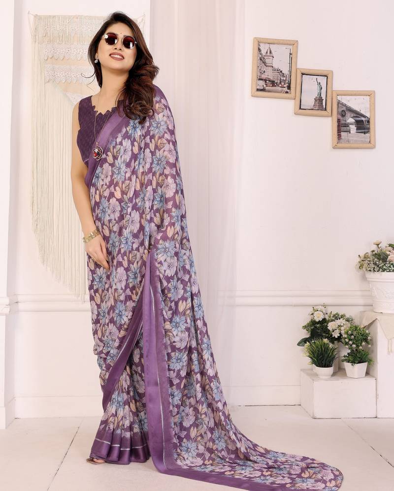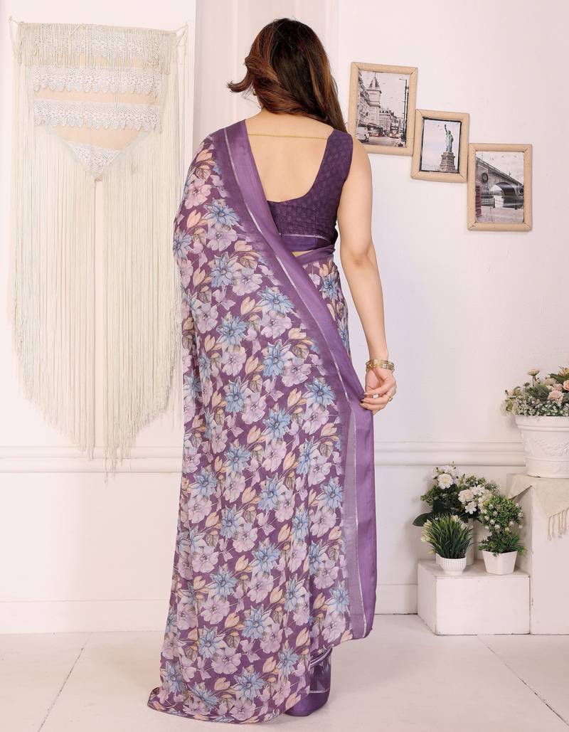 | Product Name | Purple Color Moss Satin Patta Designer Flower Printed Ceremonial Saree | |