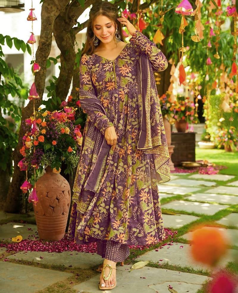 Product Name Purple Muslin Digital Printed Palazzo Suit
