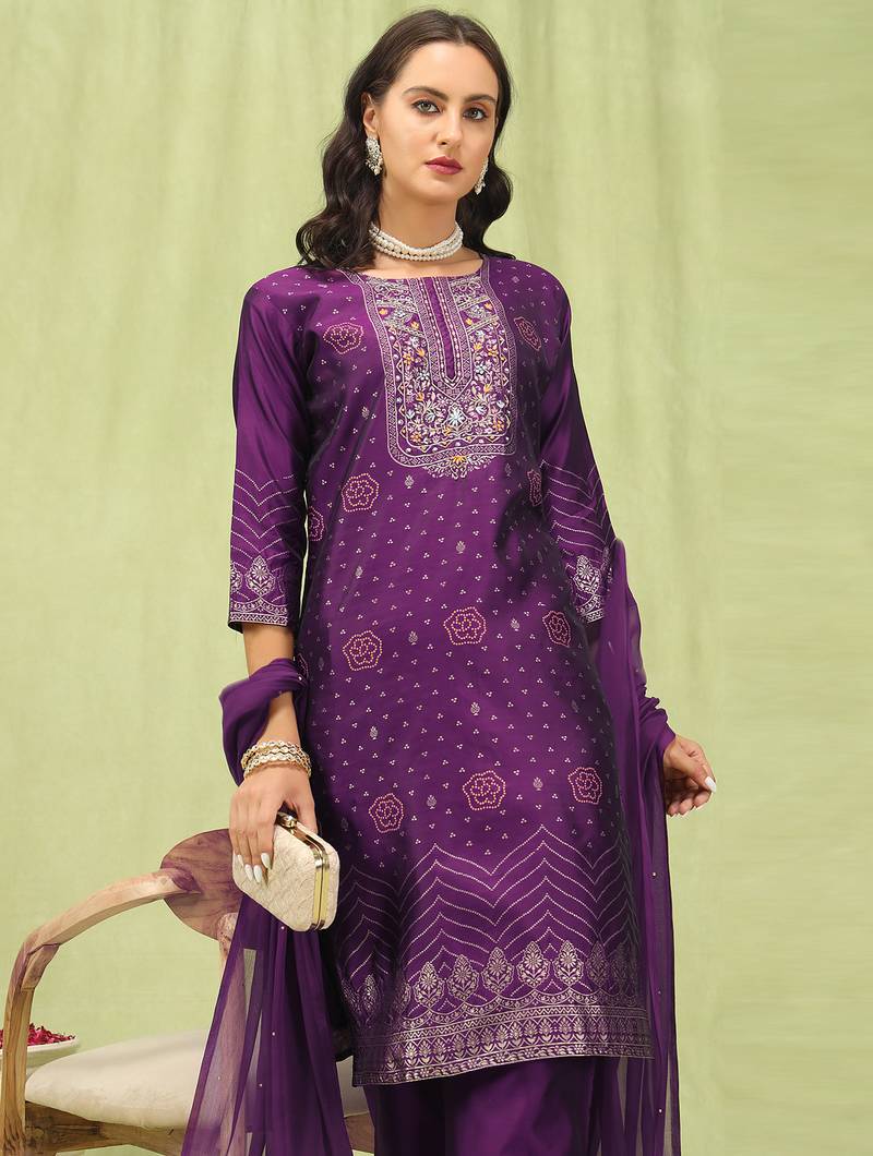 | Product Name | Purple Color Silk Blend Fabric Designer Embroidered Suit | |