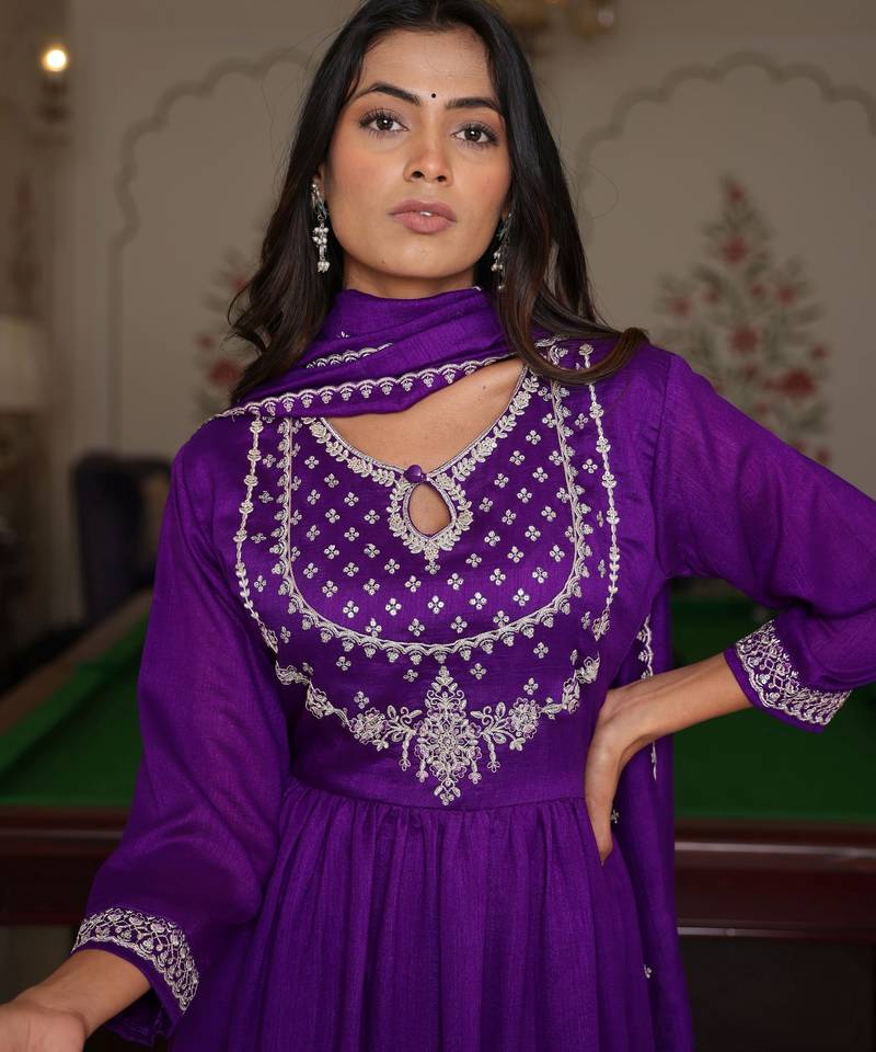 | Product Name | Purple Color Soft Silk Fabric Embroidered Kurta Set | |