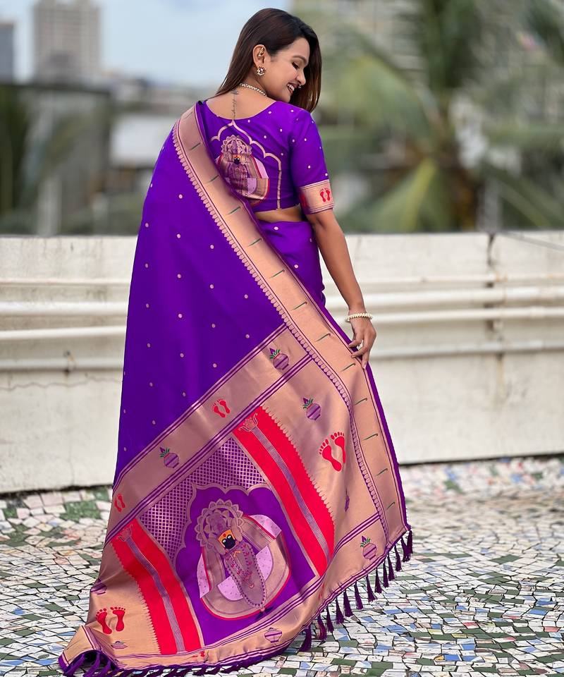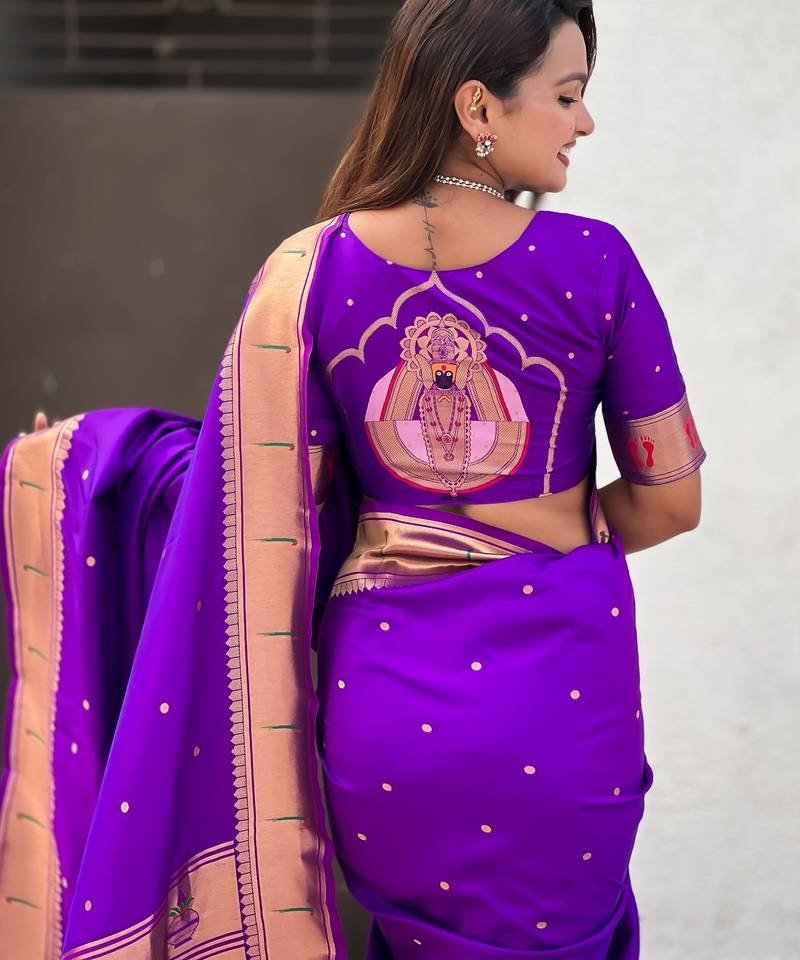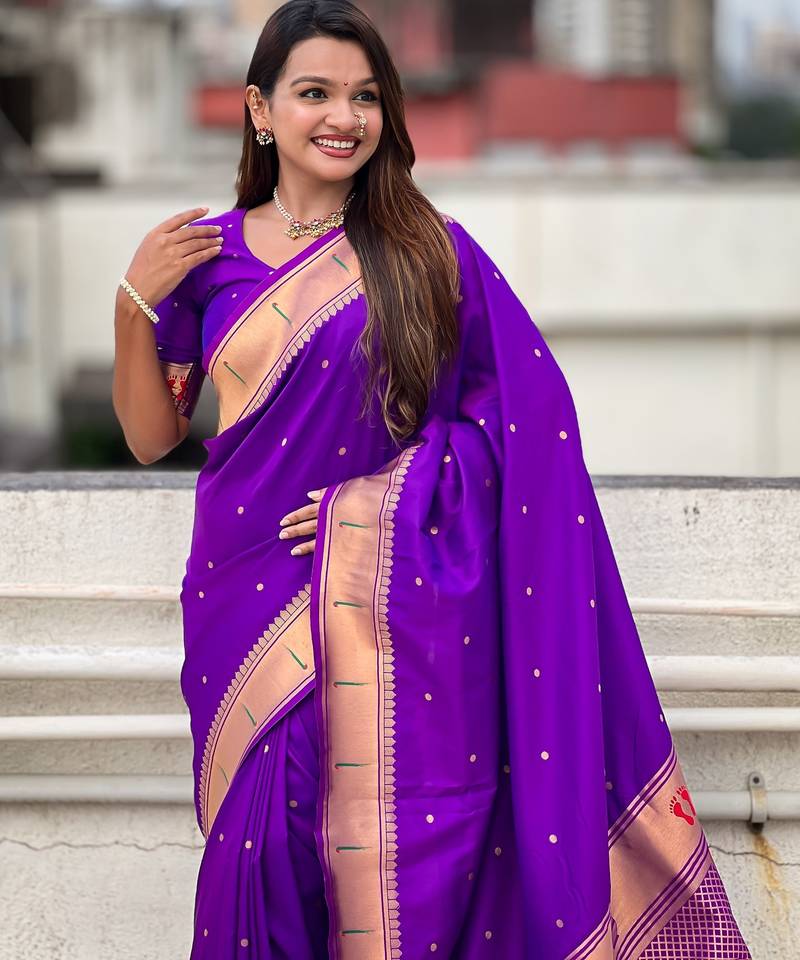 | Product Name | Purple Color Soft Silk Blend Fabric Woven Paithani Designer Cultural Rich Saree | |