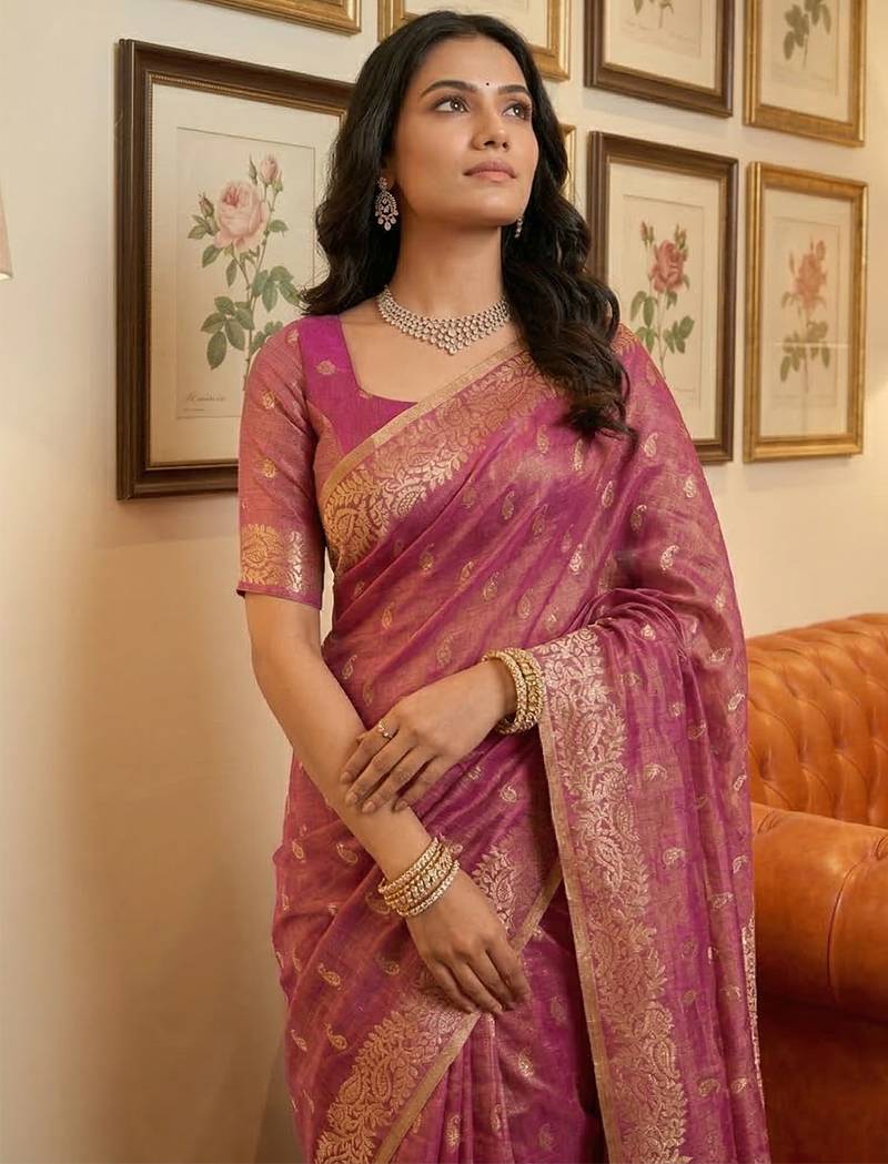 | Product Name | Purple Color Tissue Silk Fabric Designer Ceremonial Saree | |