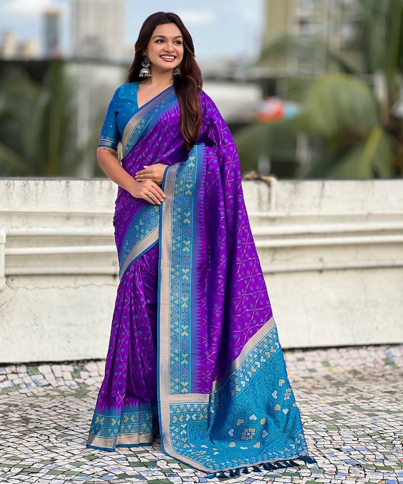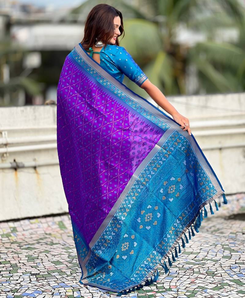| Product Name | Purple Color Woven Meenakari Ikkat Designer Patola Silk Saree | |