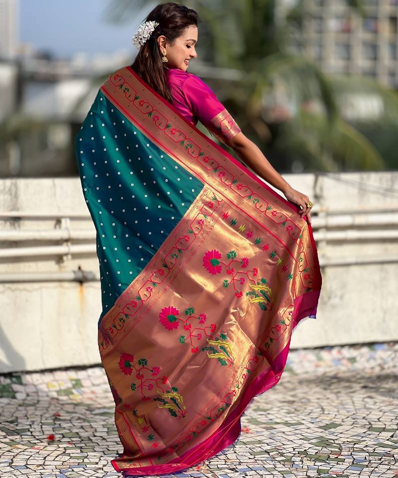 | Product Description | Garb These Party Wear Saree In Fine Colored.These Saree And Blouse Is Fabricated On Soft Silk.Its Beautified With Weaving Bandhani Jari, Rich Paithani Meenakari Pallu Designer. |