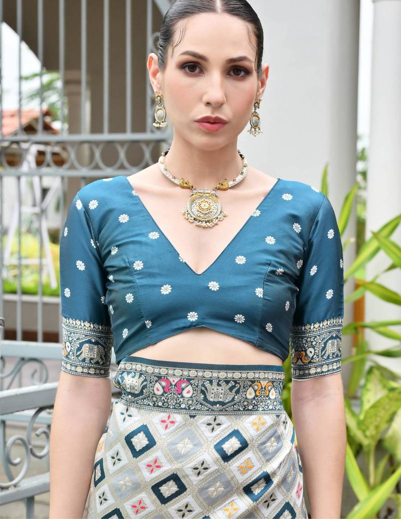 | Product Description | Attractive These Festive And Party Wear Saree In Fine Colored.These Saree And Blouse Is Fabricated On Banarasi Silk.Its Beautified With Woven Ajarakh Patola Meenakari Designer. |