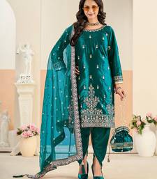 Rama color festive special velvet fabric ethnic embroidered partywear suit semi stitched