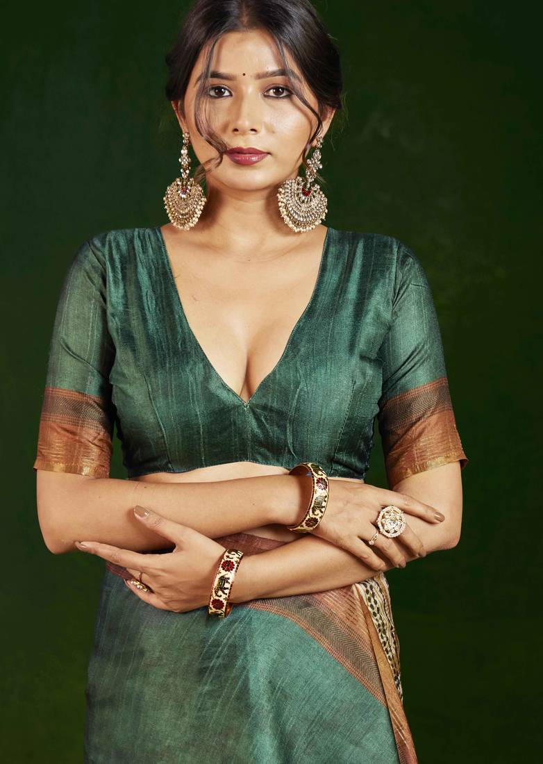 | • | Saree | : | Color- Green / Fabric- Silk Blend |