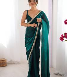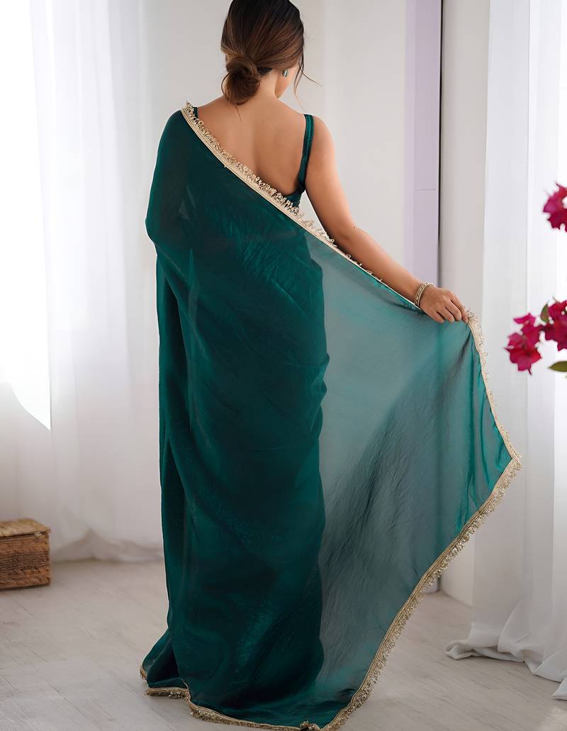 Rama color space art silk fabric saree with zalar lace border ethnic girlie saree