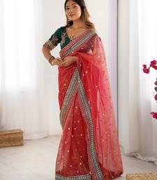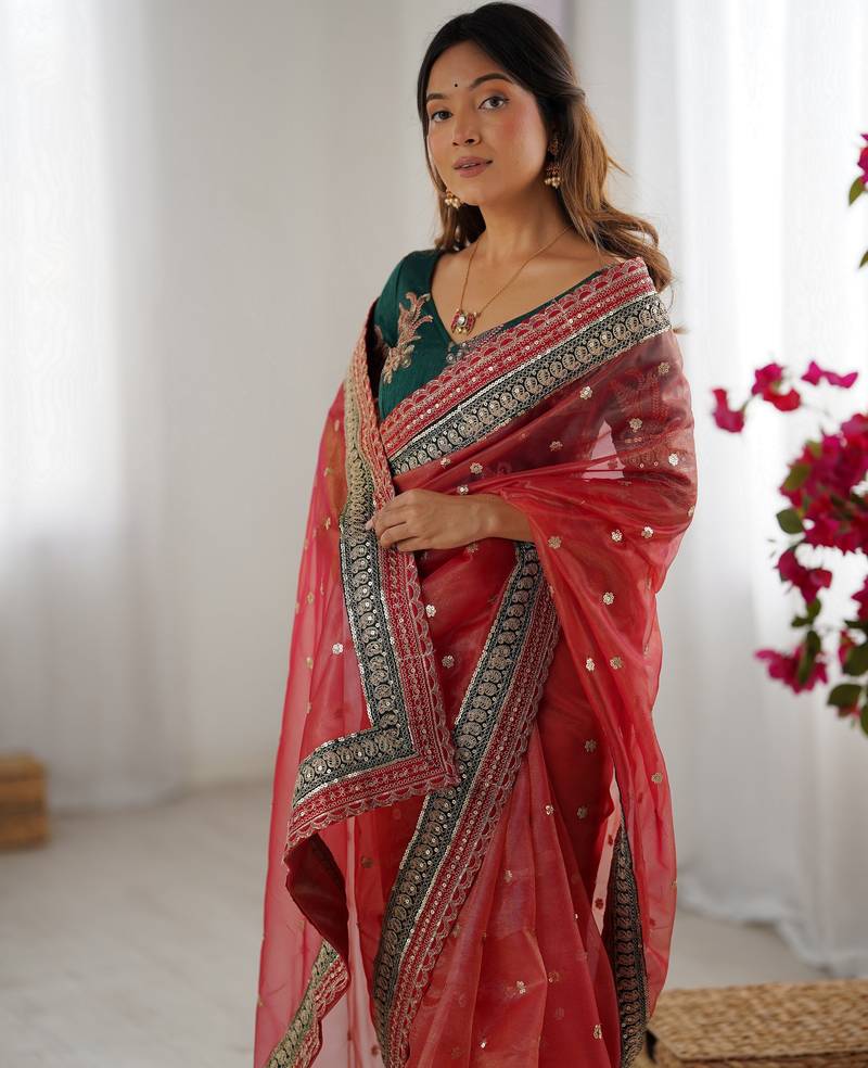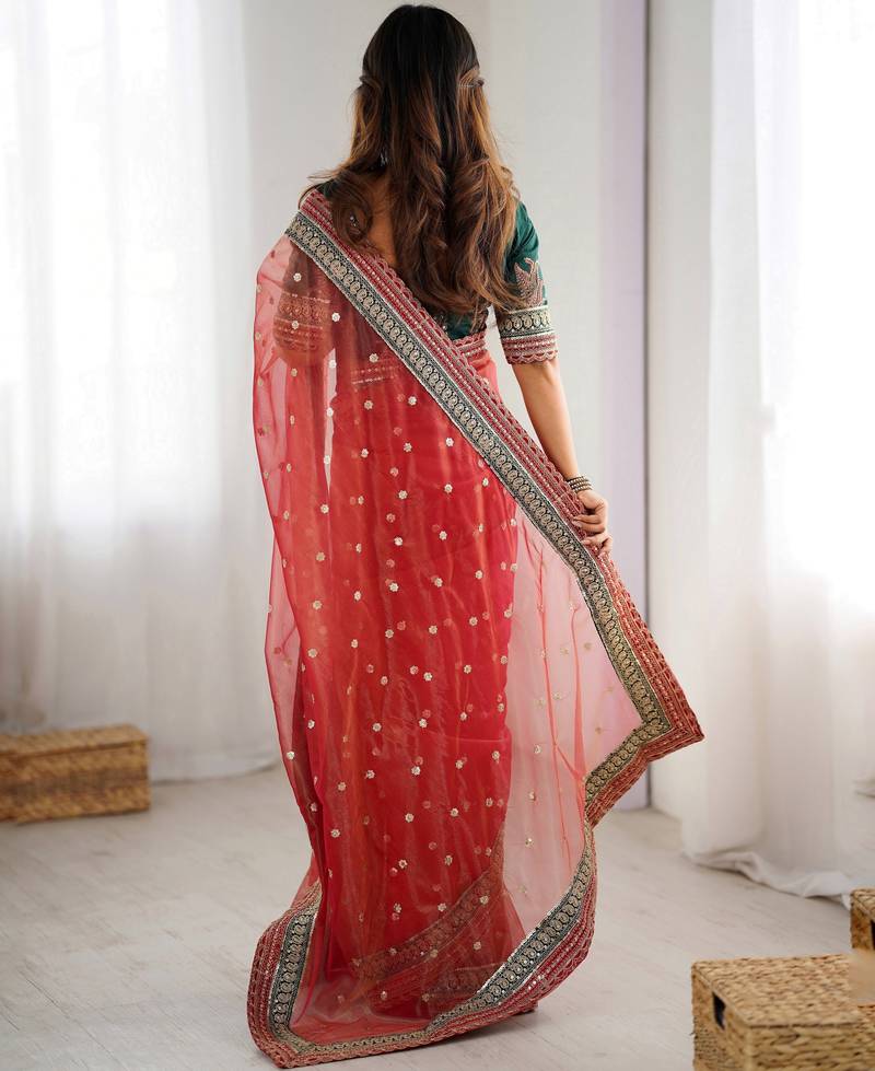 | Product Name | Red Color Banarasi Crush Fabric Graceful Partywear Sequins Embroidered Saree | |