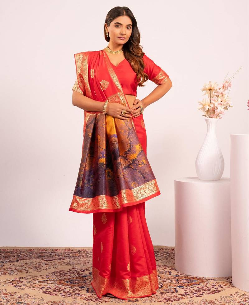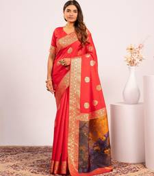 Red color banarasi art silk fabric designer partywear saree