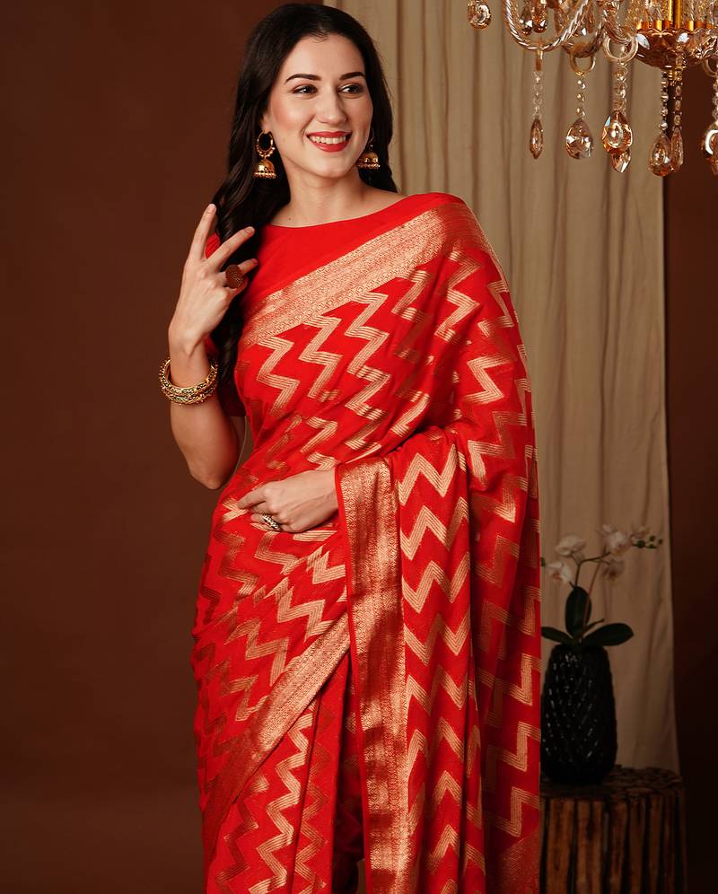 Red color beautiful woven ethnic georgette fabric ceremonial saree