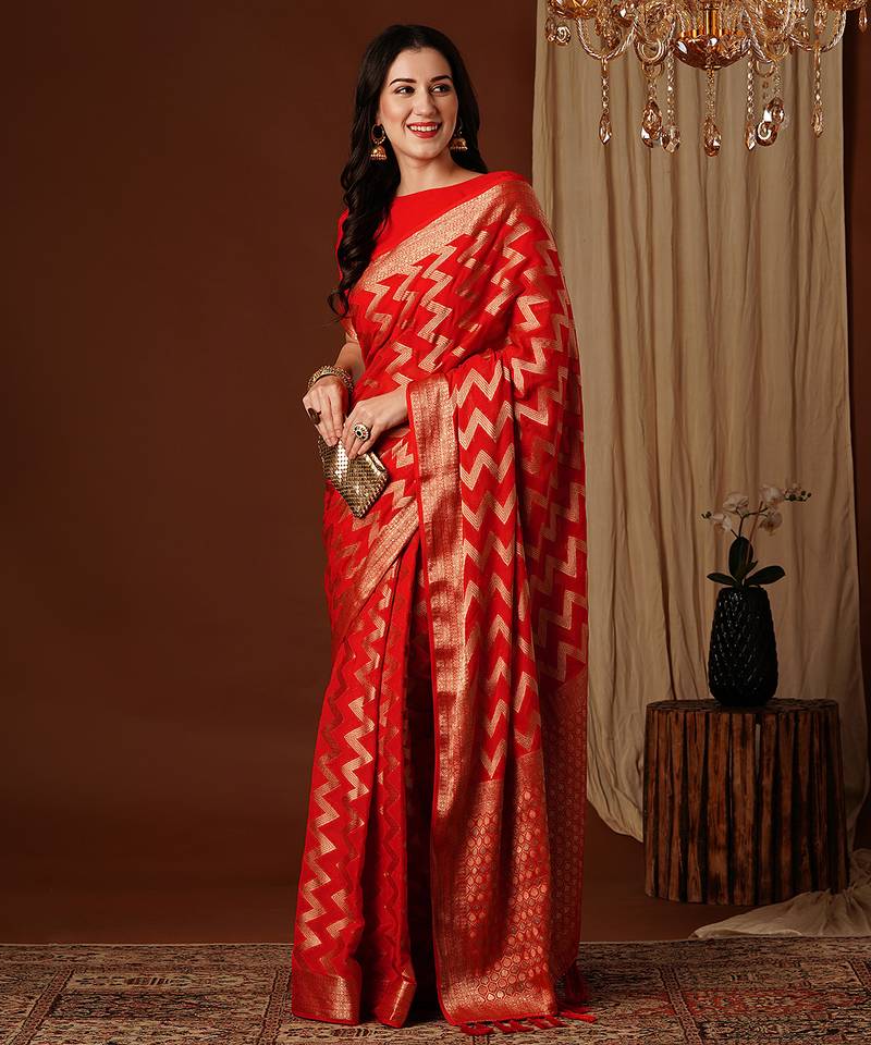| Product Name | Red Color Beautiful Woven Ethnic Georgette Fabric Ceremonial Saree | |