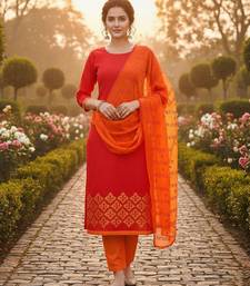 | Product Name | Red Color Cotton Slub Fabric Designer Casual Suit With Embroidery | |