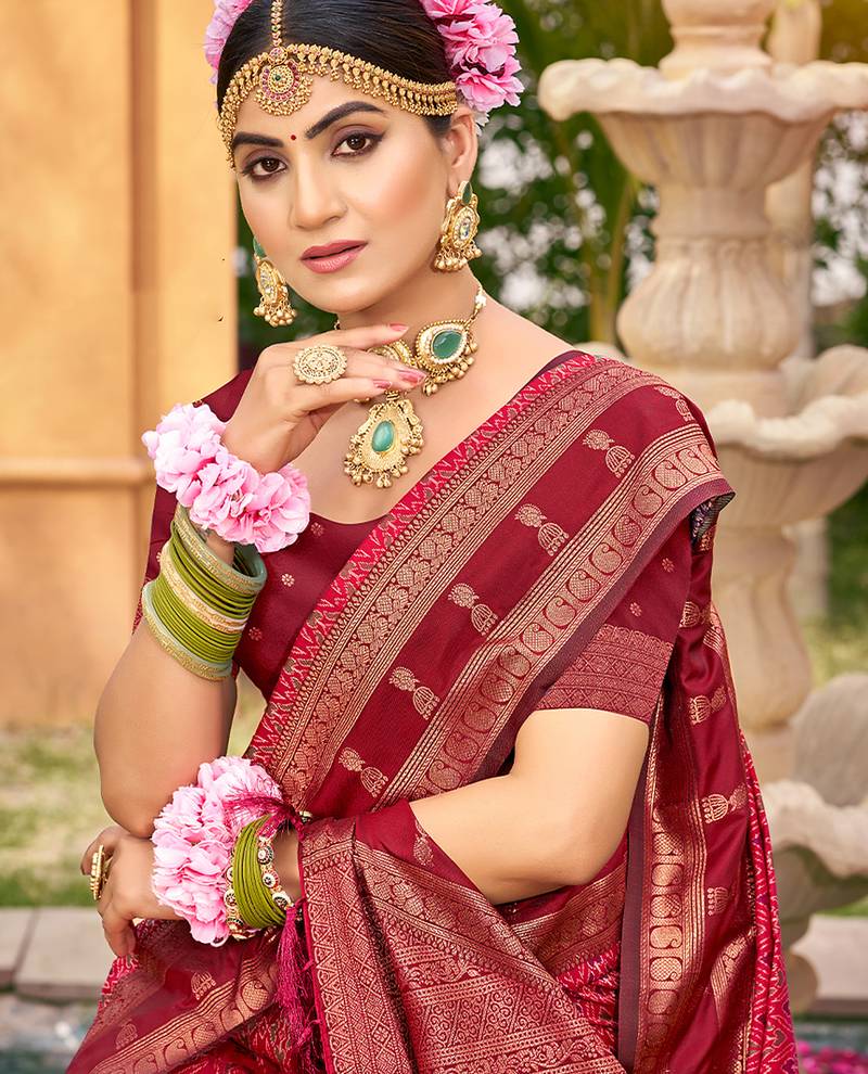 | Product Name | Rich And Ethnic Looking Pink Color Woven Soft Silk Saree | |