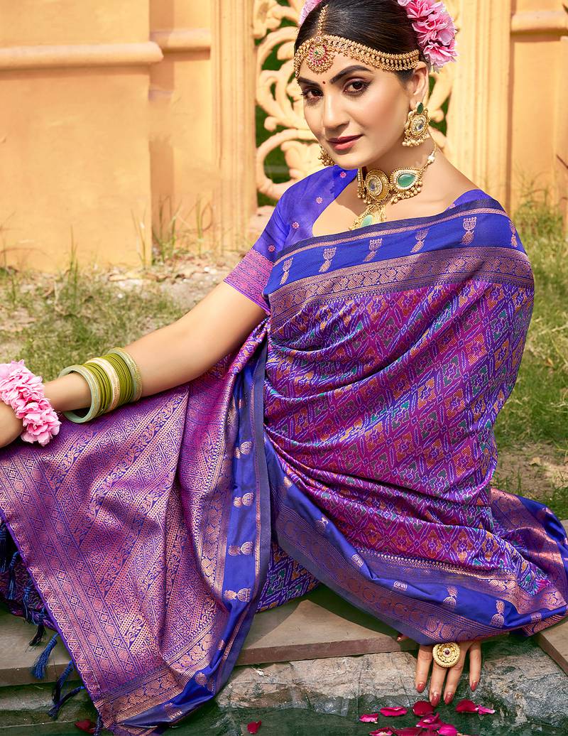 Rich and ethnic looking purple color woven soft silk saree