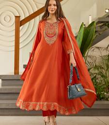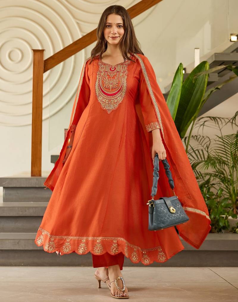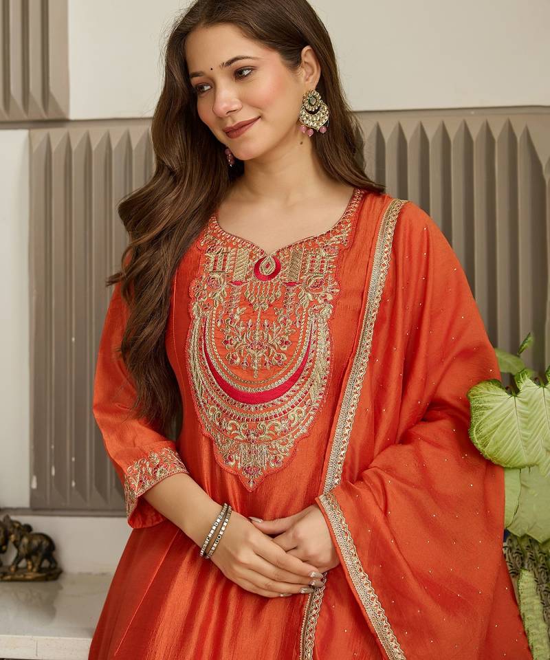 | Product Name | Rust Color Beautiful Vichitra Silk Fabric Graceful Ceremonial Kurti Set | |