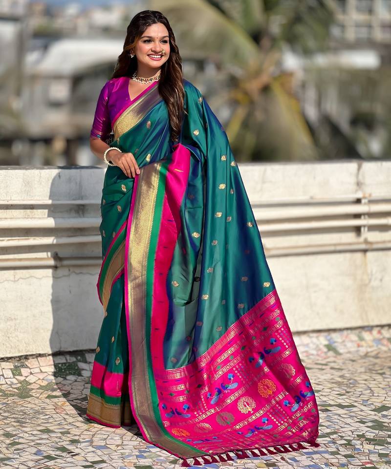 | Product Name | Sea Green Gold Zari Woven Paithani Silk Blend Saree | |
