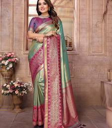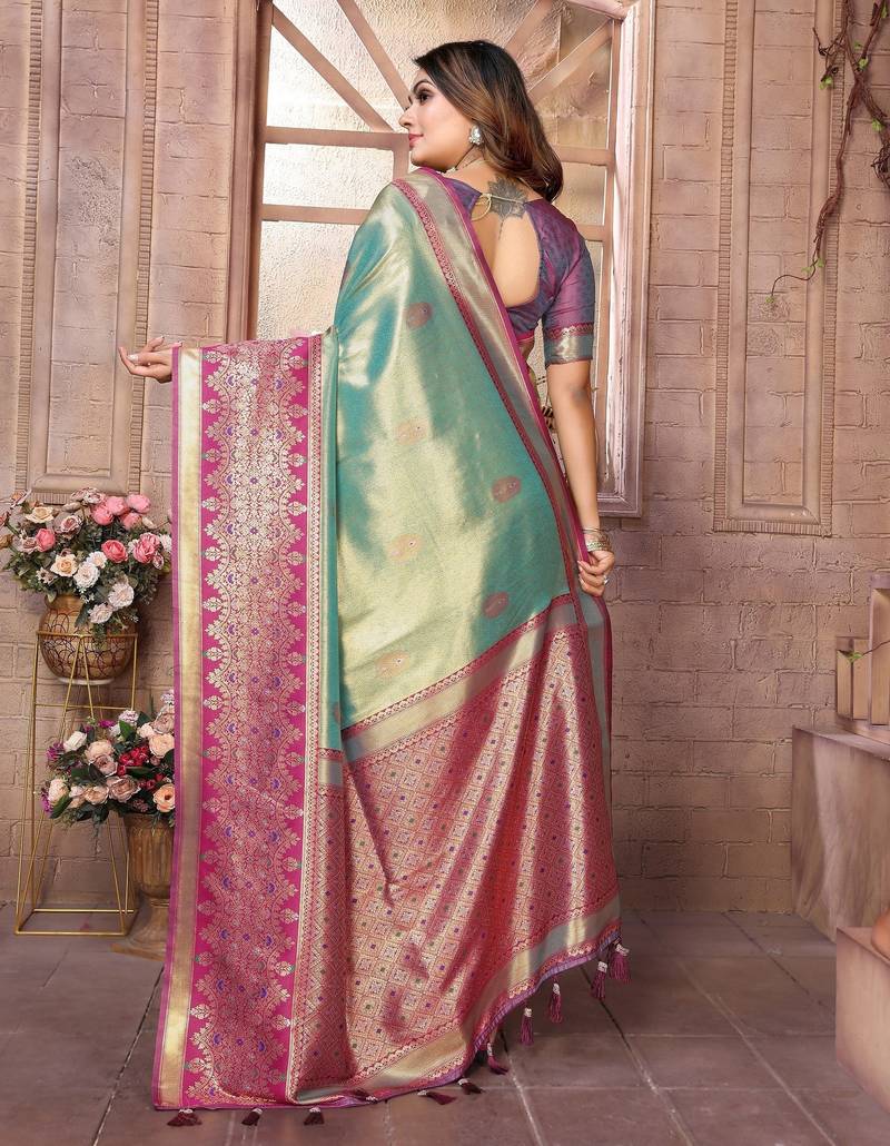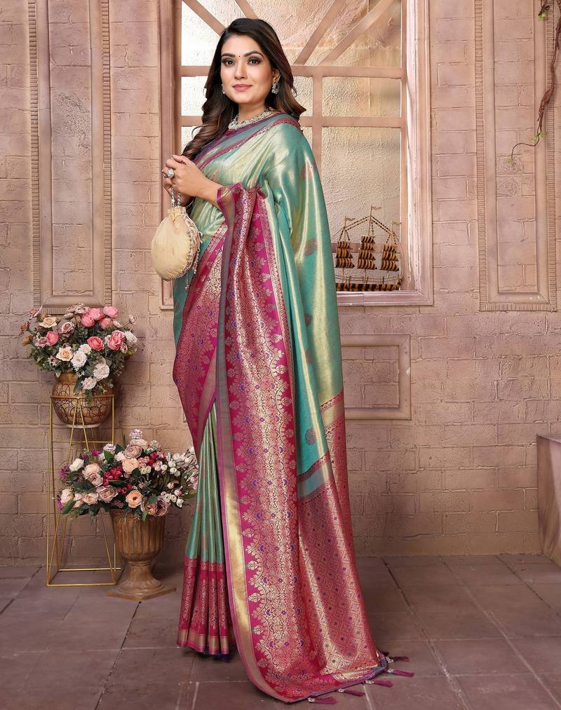 Sky blue color banarasi tissue silk blend ethnic jacquard weving designer ceremonial saree