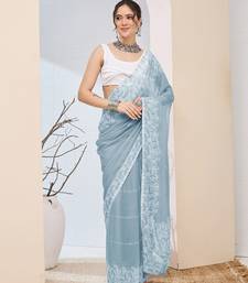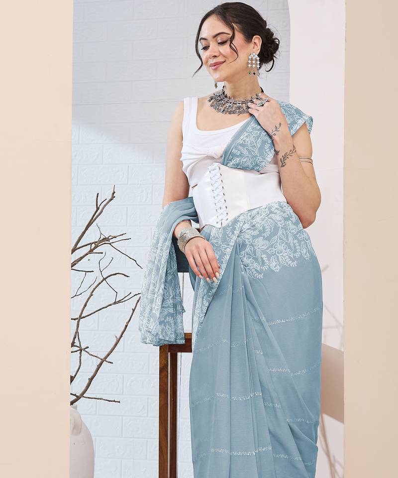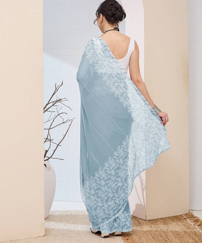 Sky color designer printed chiffon fabric ceremonial partywear saree
