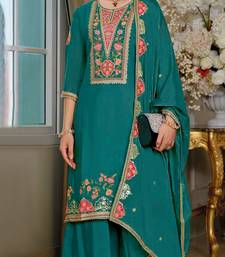 Teal color beautiful embroidered chinon fabric palazzo dress semi stitched