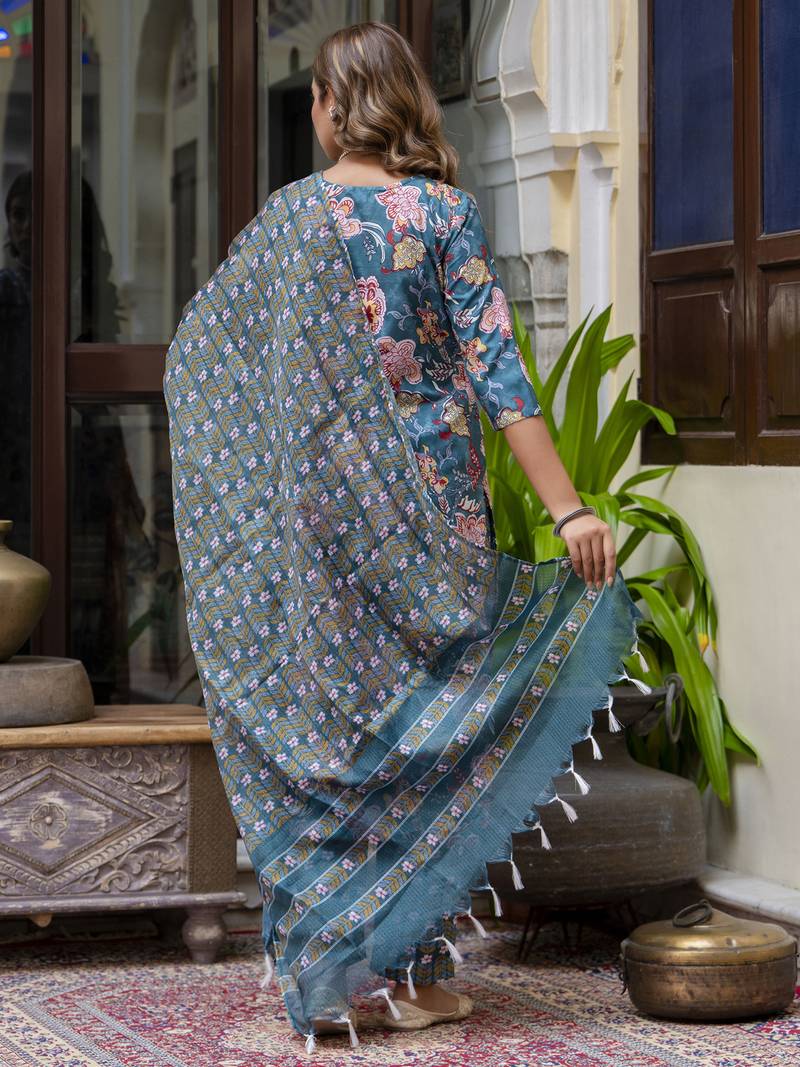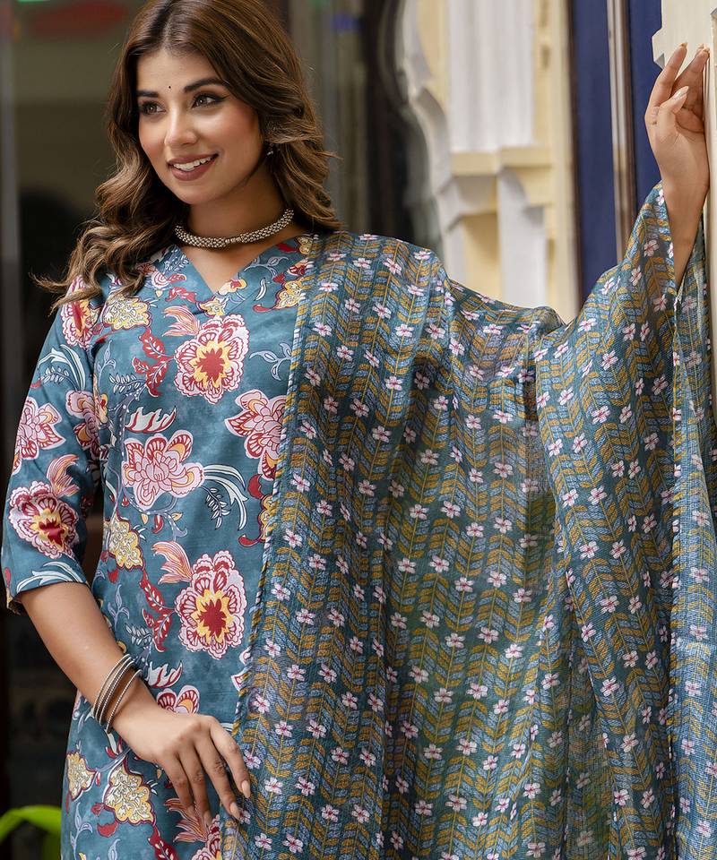 | Product Name | Teal Color Beautiful Floral Printed Cotton Blended Foral Rich Suit | |