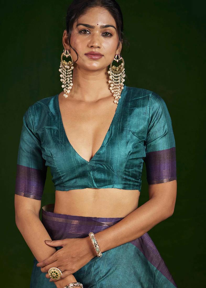 | • | Saree | : | Color- Teal / Fabric- Silk Blend |