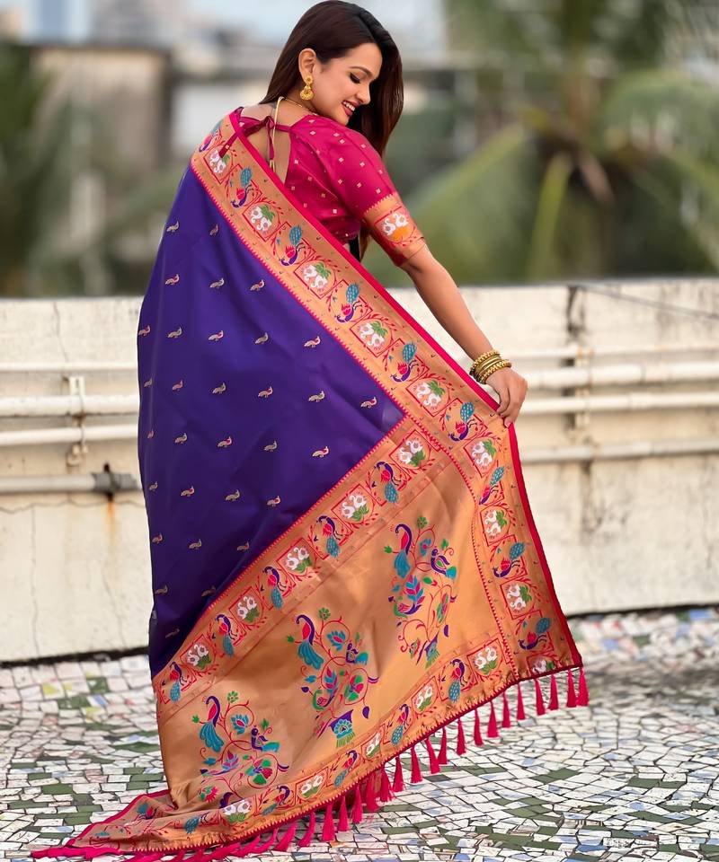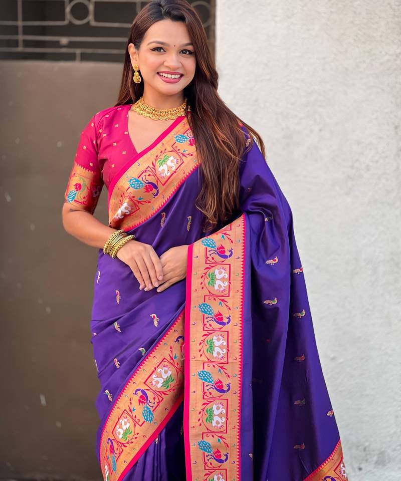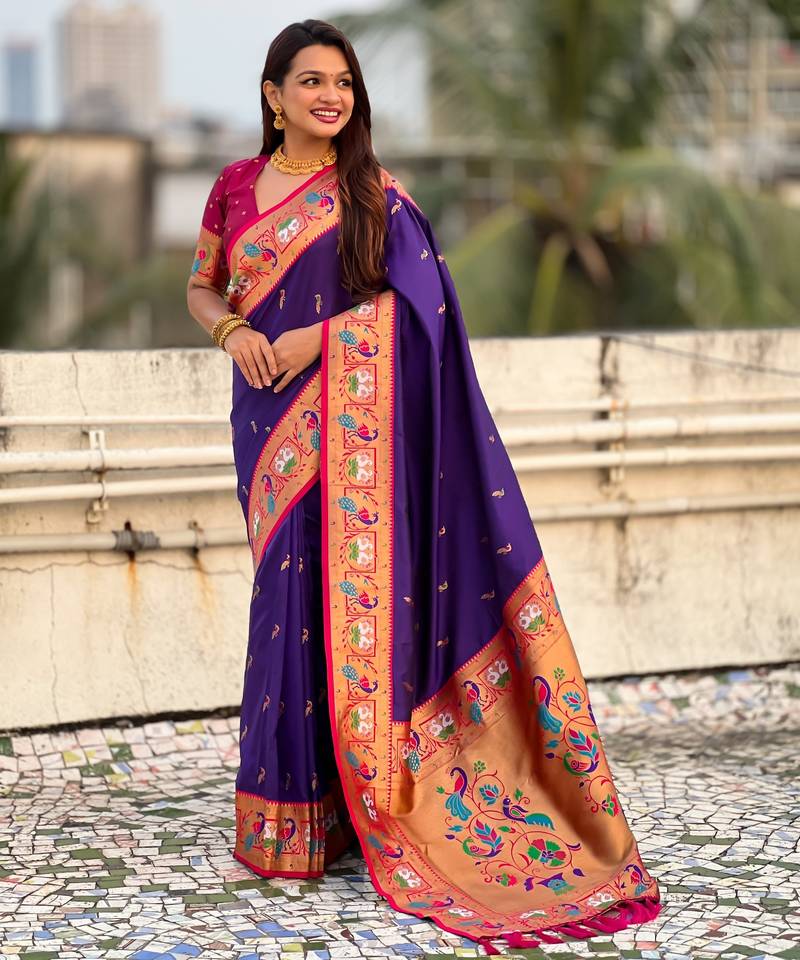Voilet color sophisitcated paithani silk saree with meenakari woven designer