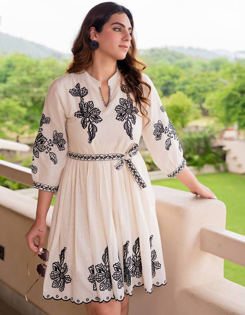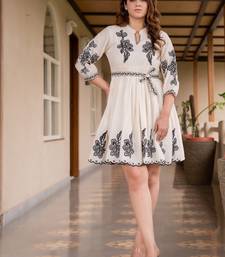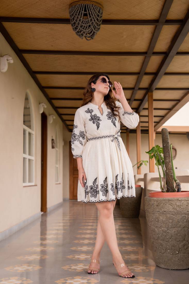 White color beautiful designer embroidery work cotton fabric tunic for girl