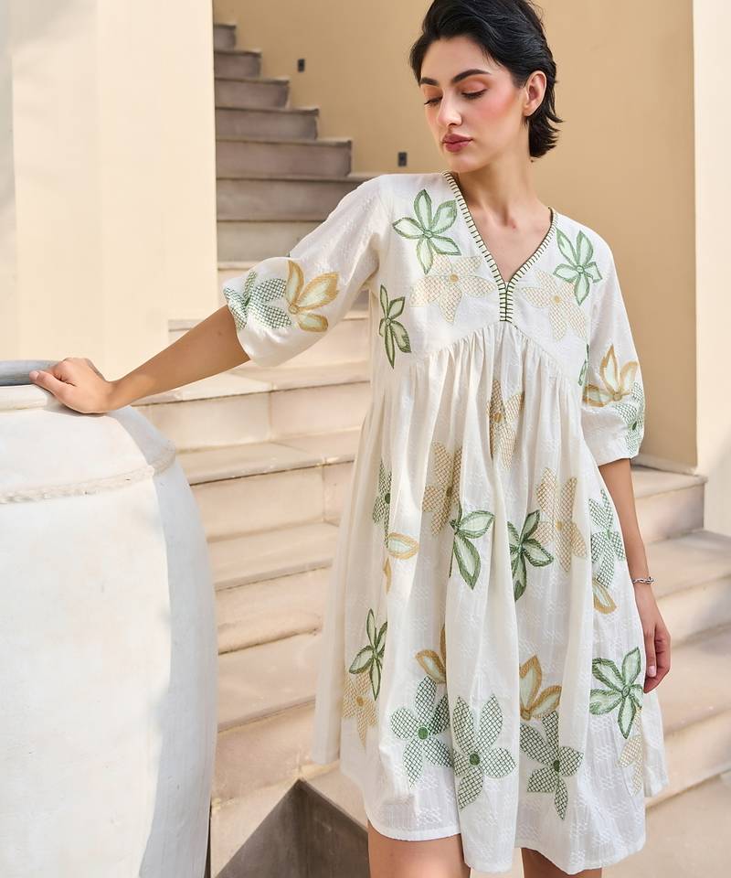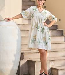 White color beautiful designer embroidery work cotton fabric tunic for girl