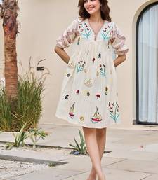 White color beautiful designer embroidery work cotton fabric tunic for girl