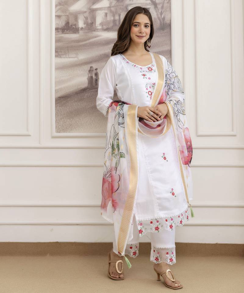 | • | Dupatta | : | Color- White / Fabric- Organza |