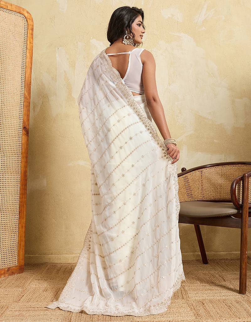White color beautiful georgette fabric glamorous embroidered saree