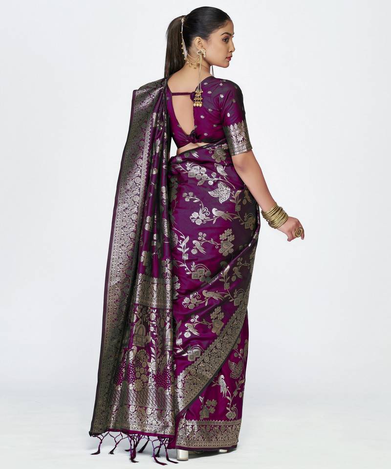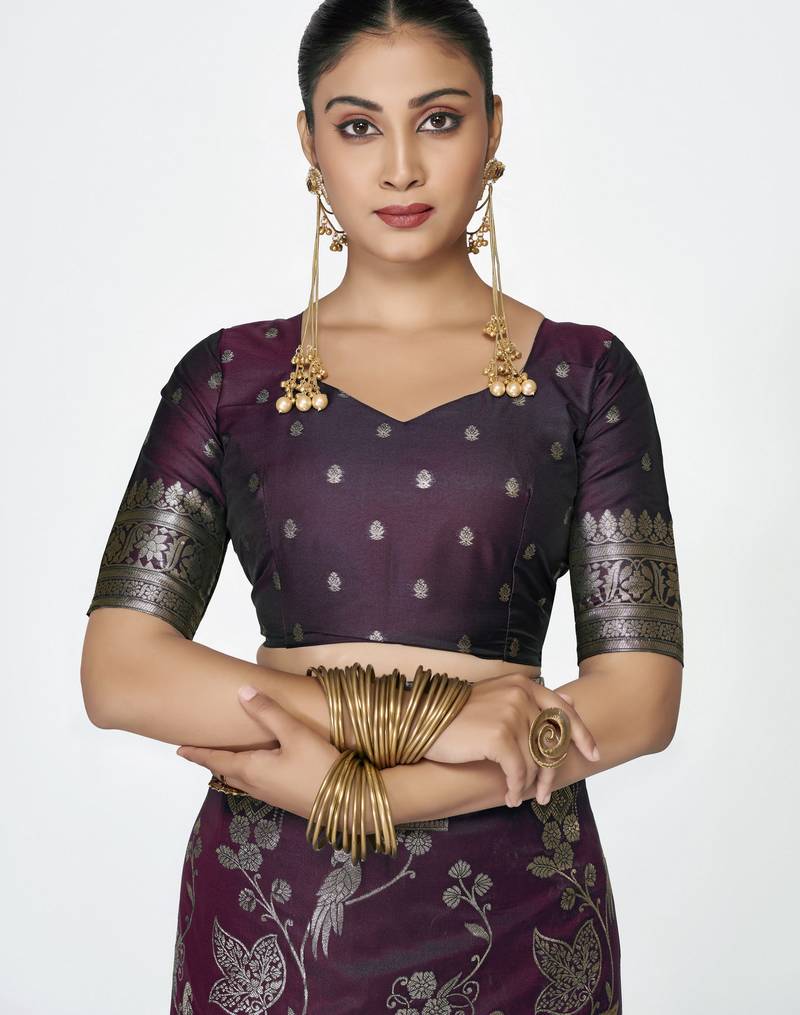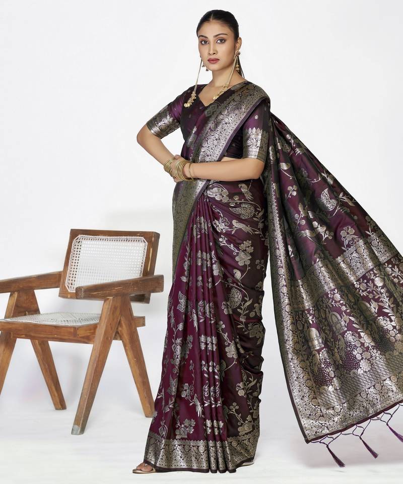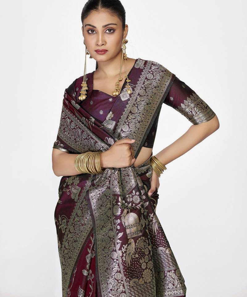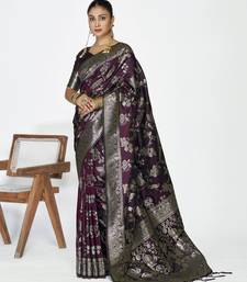 Wine color banarasi art silk fabric woven jari designer ceremonial partywear saree