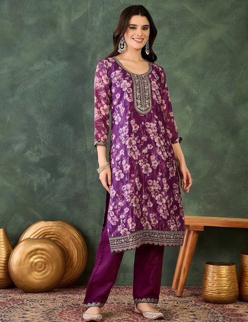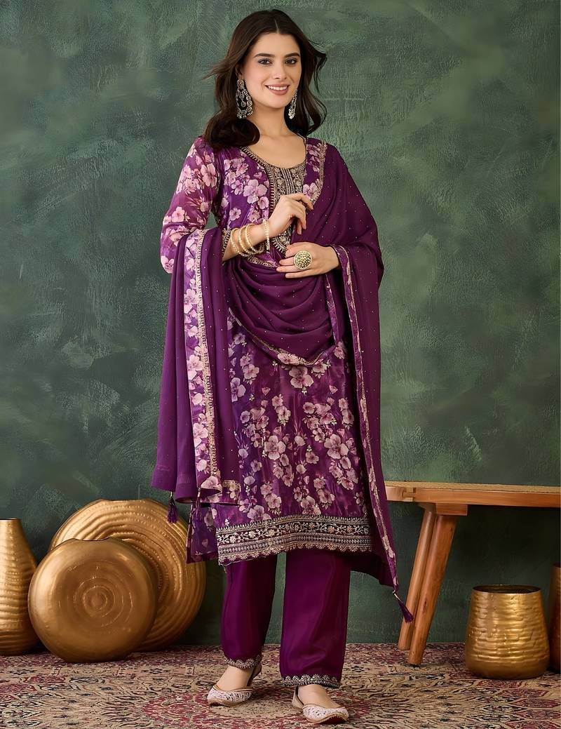 | Product Name | Wine Chinon Silk Embroidery Work Suit | |