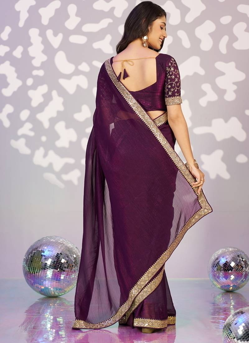 | Product Name | Wine Color Crunchy Fabric Embroidery Work Ready To Wear Saree | |