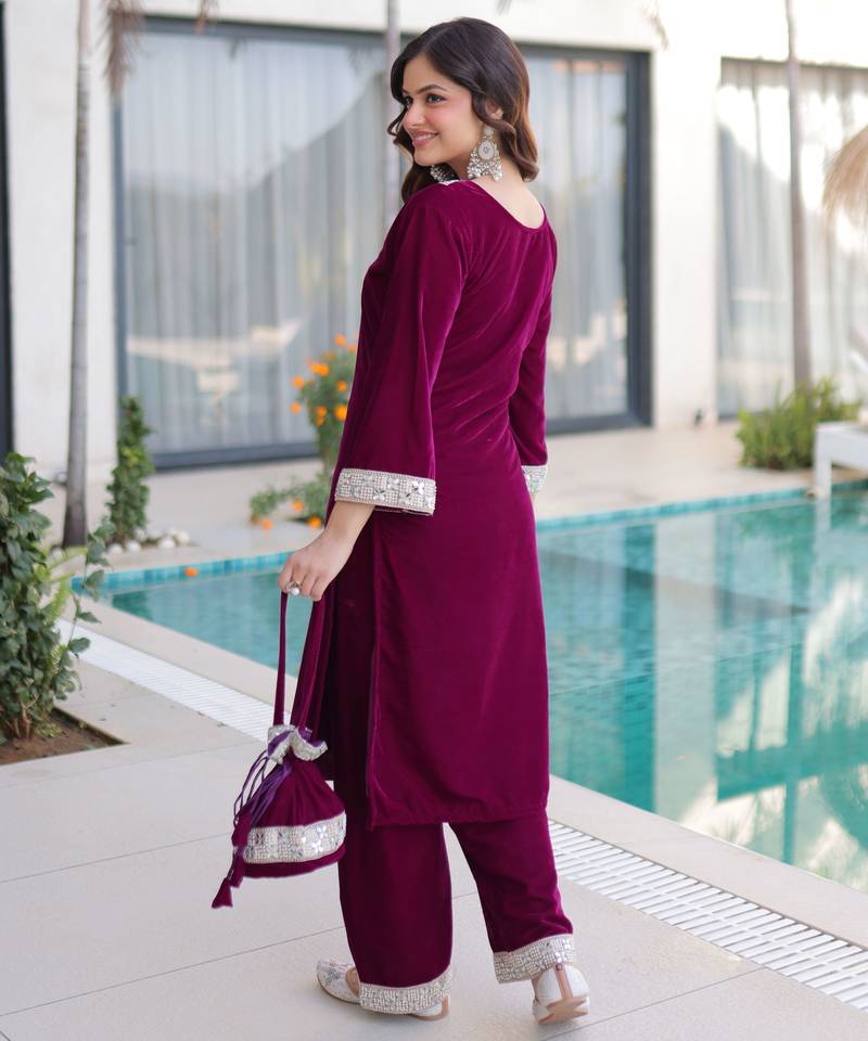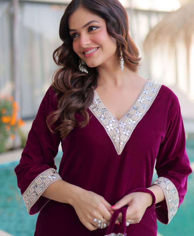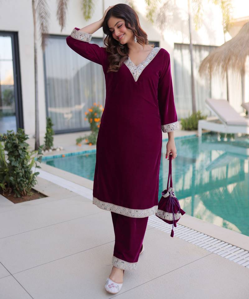 | Product Name | Wine Velvet Kurta Pant Set With Batwa | |