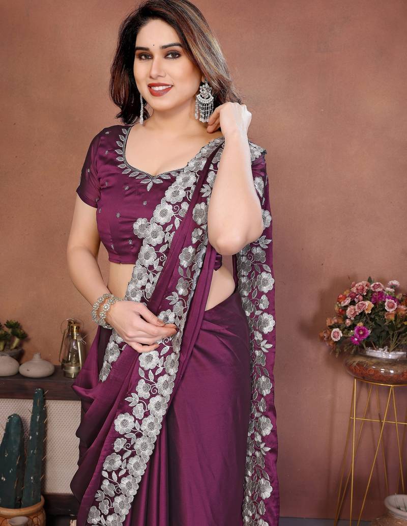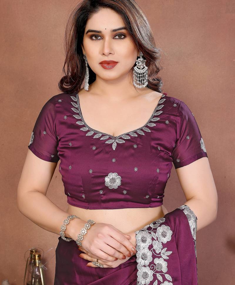 | • | Saree | : | Color- Wine / Fabric- Art Silk |