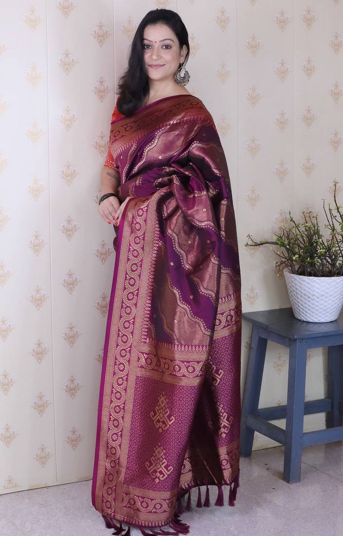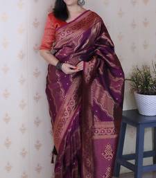 Wine color soft silk blend woven jari designer ethnic partywear saree