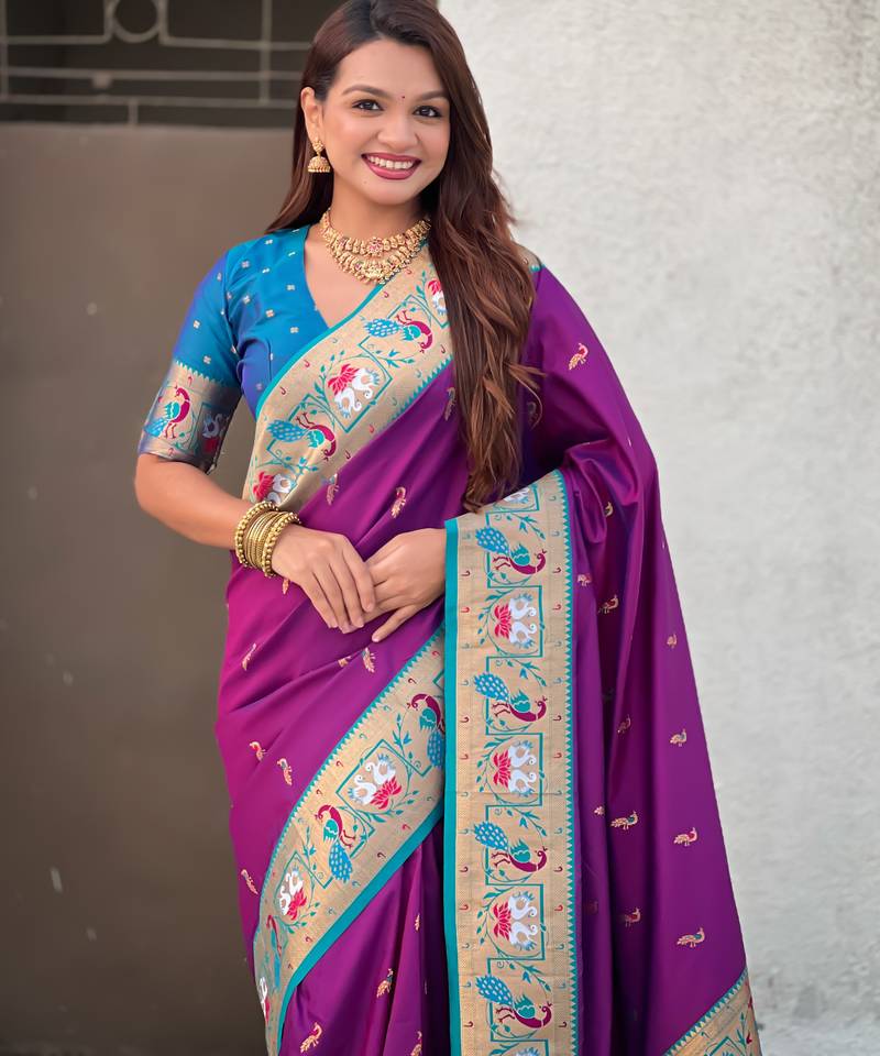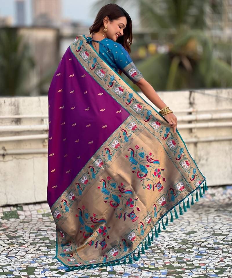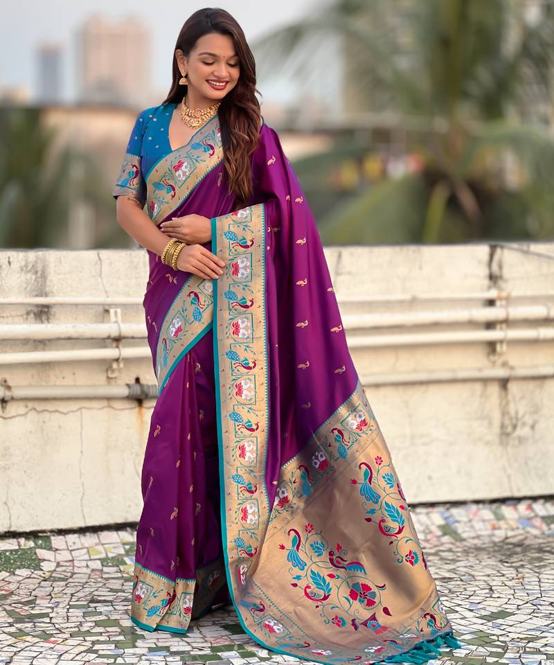 Wine color sophisitcated paithani silk saree with meenakari woven designer