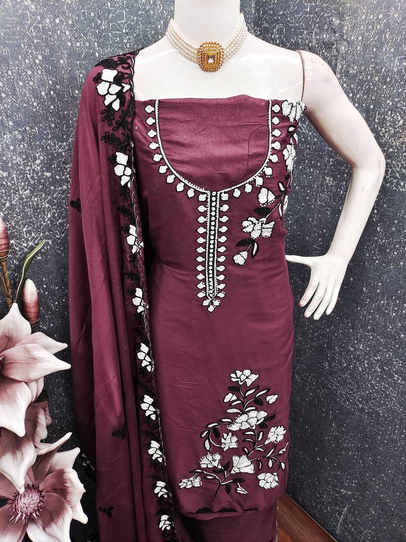 Wine star georgette embroidered fabric for salwar kameez unstitched