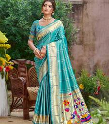Woven meenakari designer sea green color ethnic partywear saree