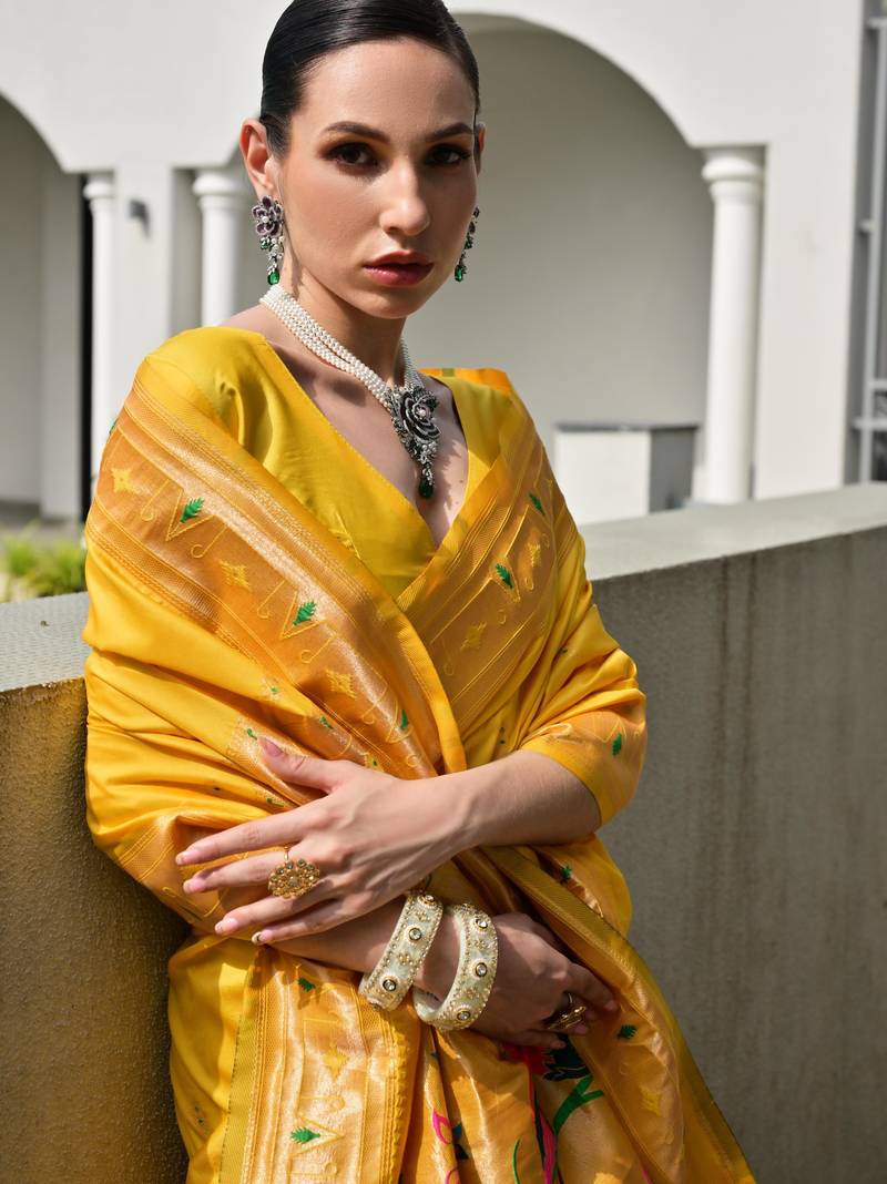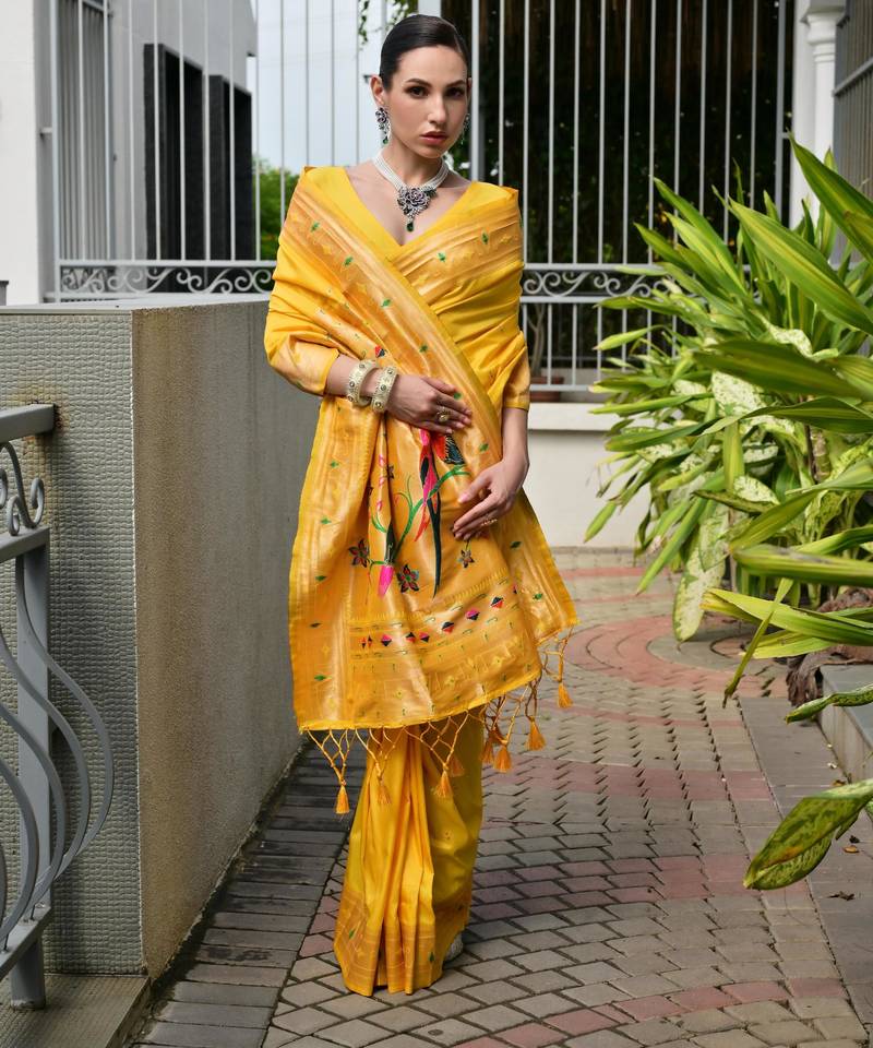 | Product Name | Yellow Color Banarasi Silk Blend Fabric Designer Partywear Saree | |