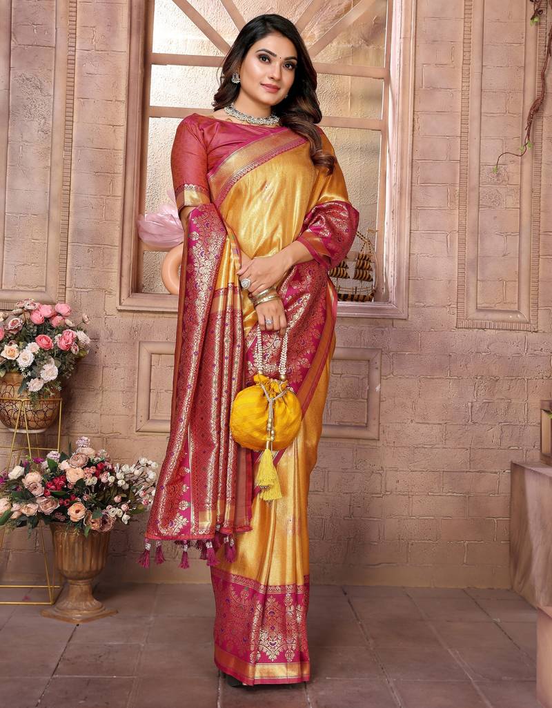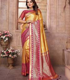 Yellow color banarasi tissue silk blend ethnic jacquard weving designer ceremonial saree