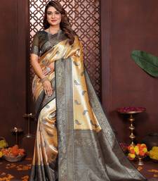 Yellow color banarasi tissue silk blend blend woven rich paithani designer ceremonial saree