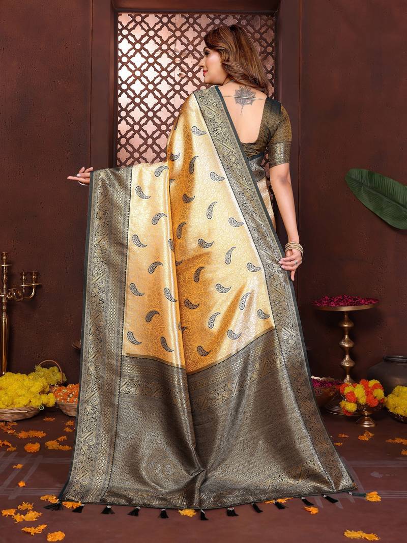 yellow color banarasi tissue silk blend blend woven rich paithani designer ceremonial saree