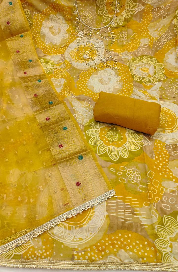 Yellow color beautiful printed designer modal silk salwar suit unstitched