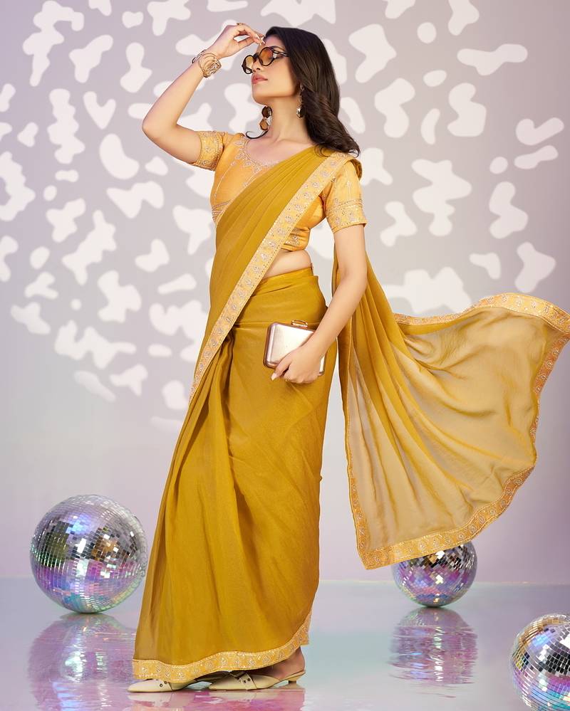 | Product Name | Yellow Color Ethnic Embroidered Moss Chiffon Fabric Girlie Partywear Saree | |