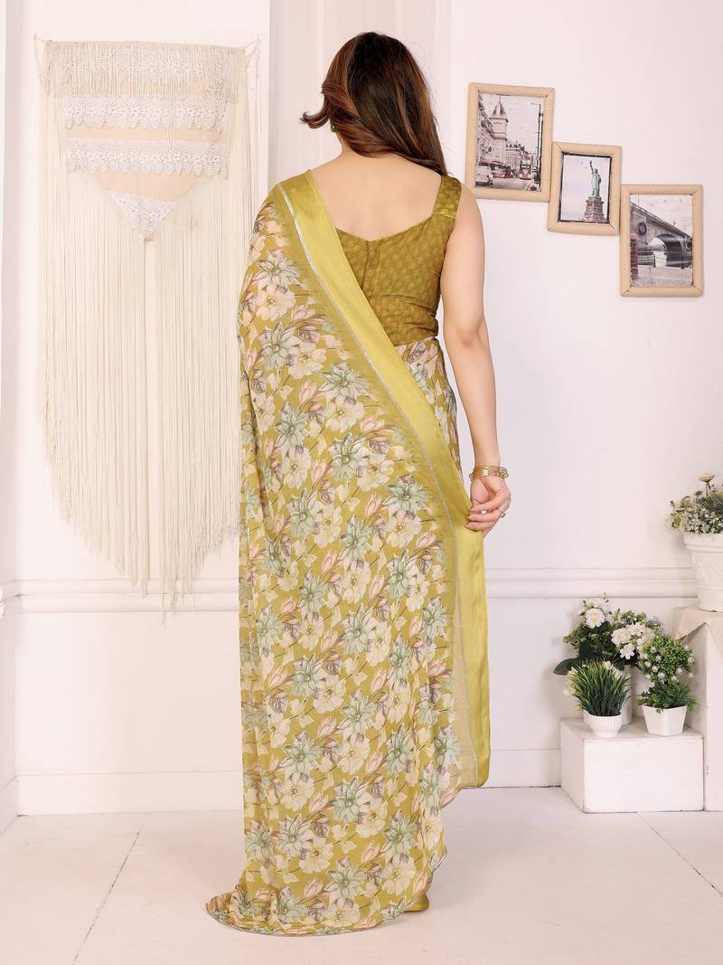 | Product Name | Yellow Color Moss Satin Patta Designer Flower Printed Ceremonial Saree | |